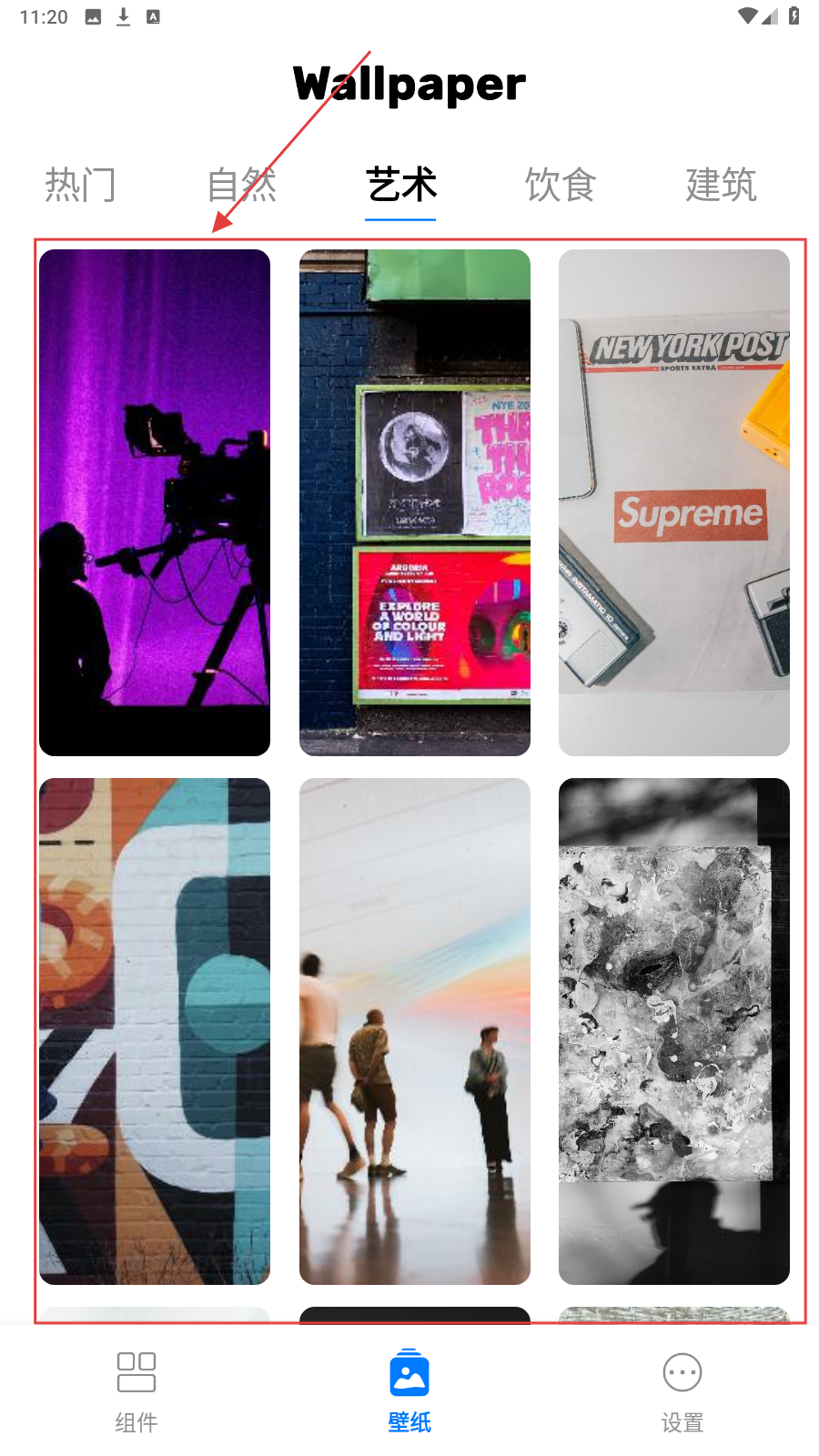 2、选择喜欢的壁纸分类,如【艺术】,查看该分类下的壁纸图片。
