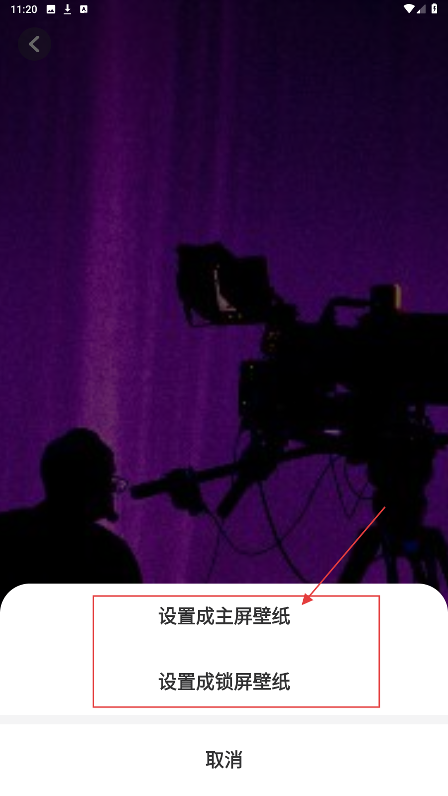 4、点击【设置壁纸】,可选择【设置成主屏壁纸】或【设置成锁屏壁纸】,完成壁纸设置。