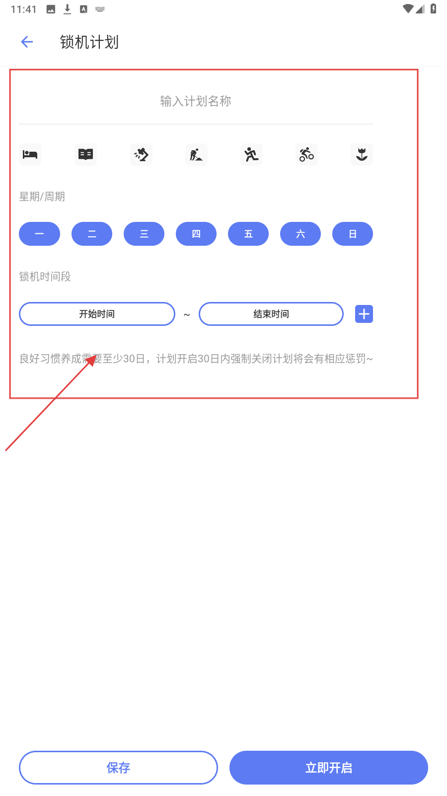 3、设置好锁机计划后,点击【立即开启】,启动锁机计划。