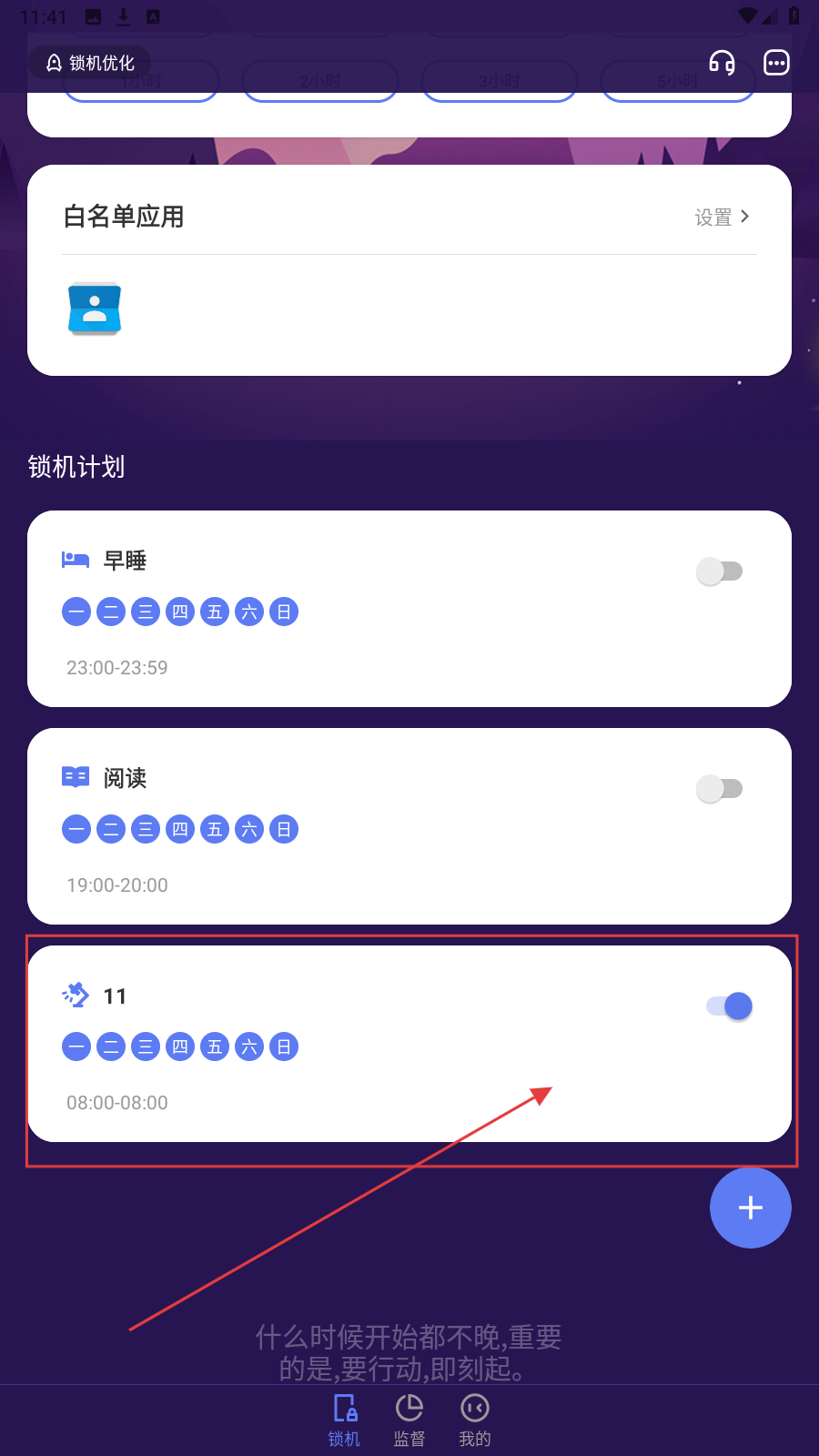 2、自动锁机计划:可以预设每日固定时间自动锁机,培养规律的手机使用习惯,让自律成为日常。