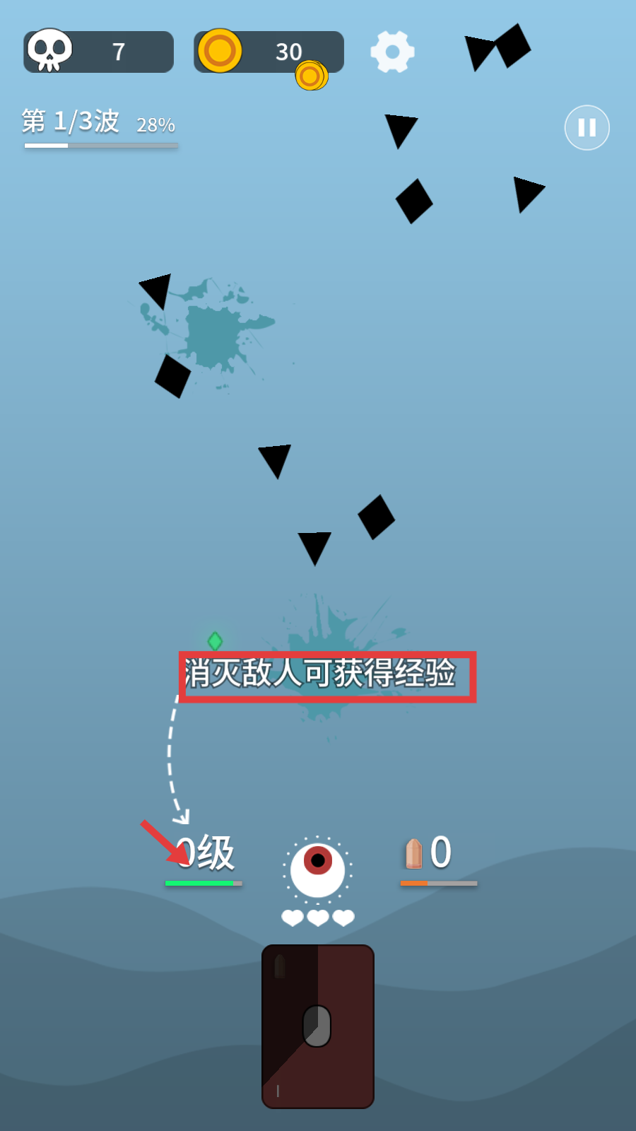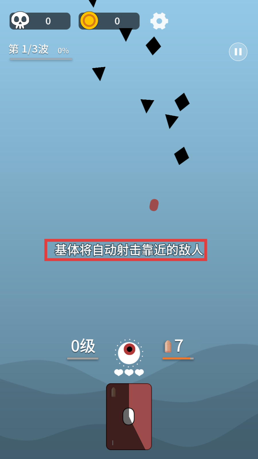 1、依托自动射击,紧盯首波敌人,别让其靠近基体,优先清数量多的。