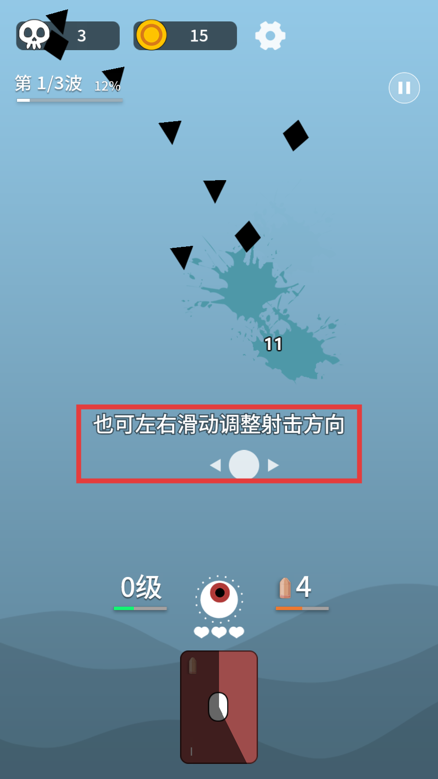 2、敌人分散时,滑动调方向,集中火力打密集处,省弹药保续航。