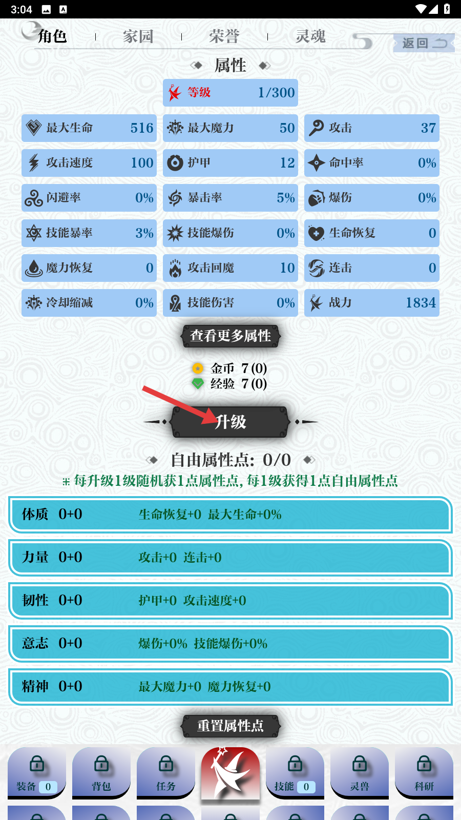 2、角色界面点“升级”,属性点优先加攻击/生命,提升战力,适配前期战斗。