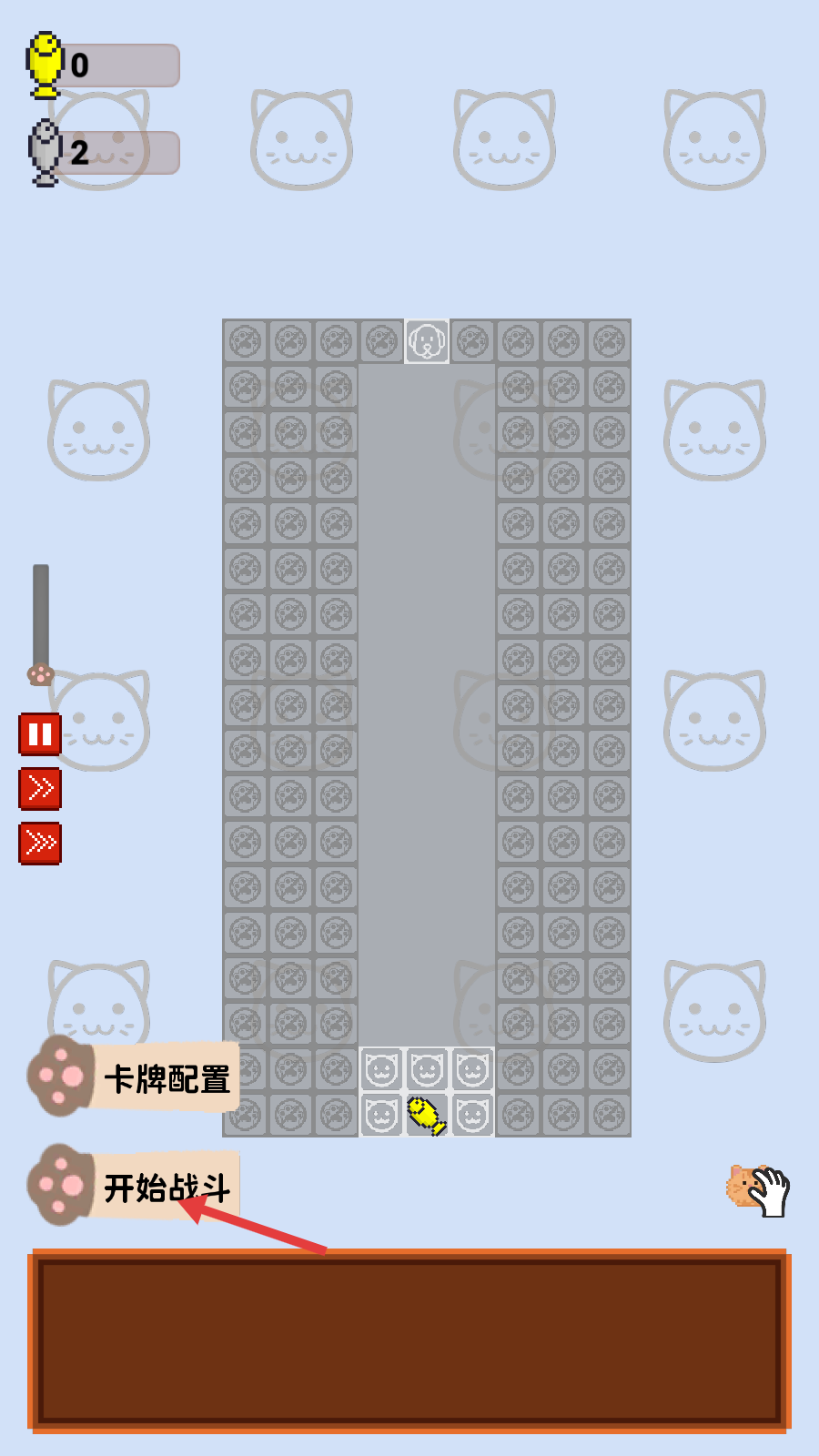 3、战斗布局界面,完成卡牌配置后,点击【开始战斗】,开启猫咪抵御进攻的战斗。