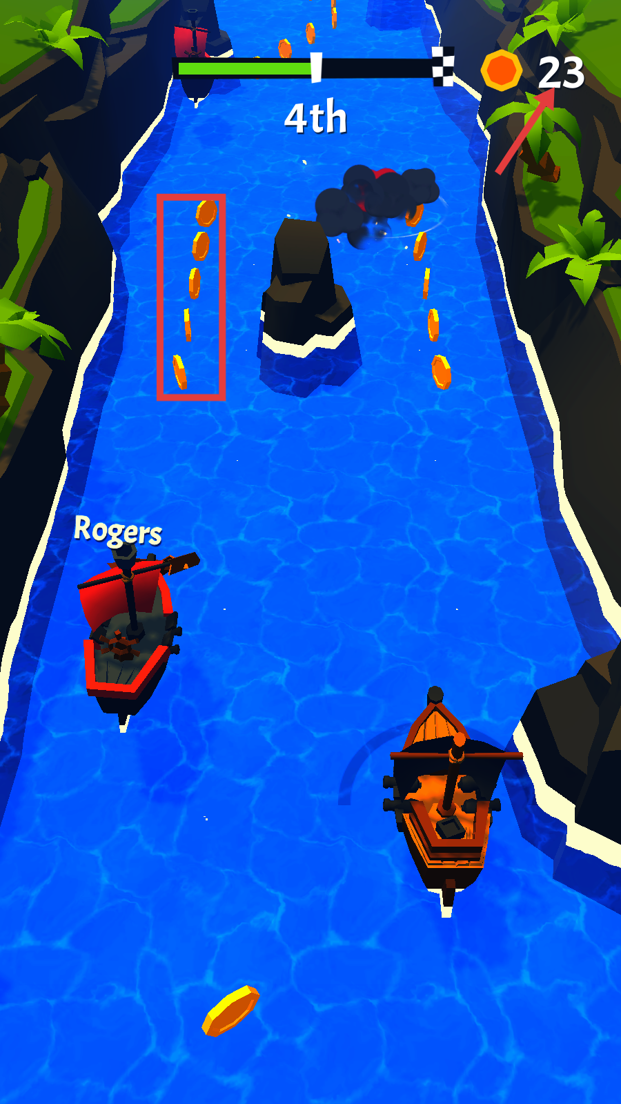 3、航行时留意金币堆,优先调整船位收集,同时避开水道礁石,保证行驶顺畅。