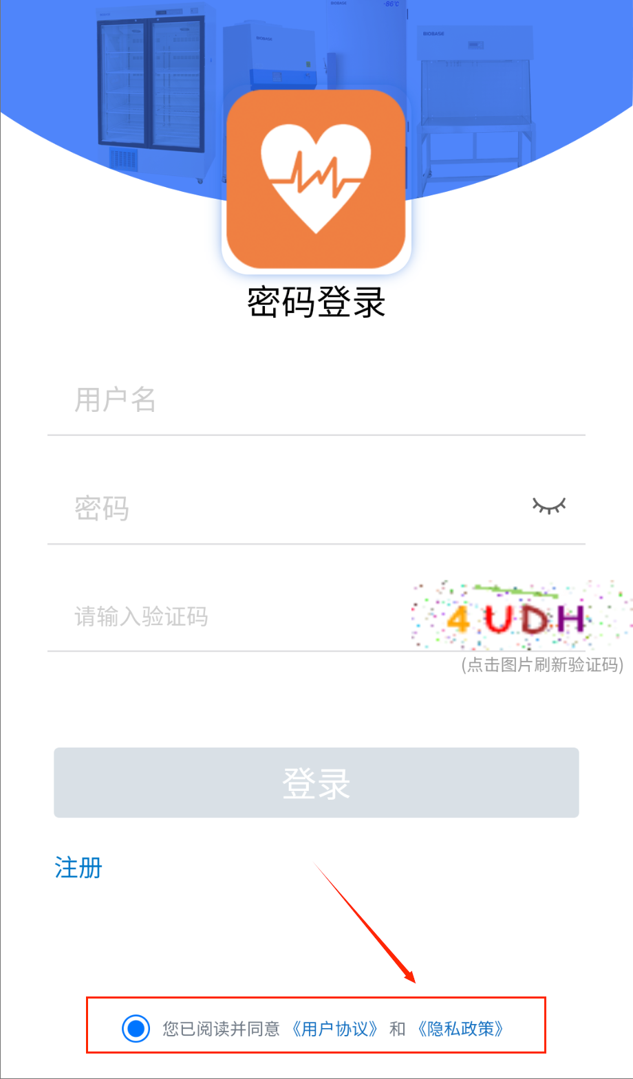 4、登录前请勾选底部用户协议和隐私政策,确认无误后点击灰色登录按钮,首次登录建议设置指纹或面容识别方便下次使用呀。