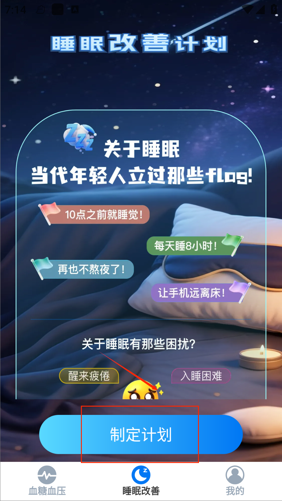 3、控糖计划页获取个性化建议,包括饮食调整、运动方案等,设置用药和复诊提醒呀。