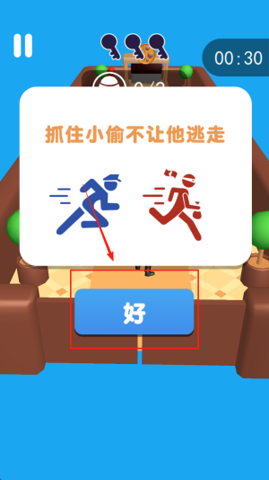 4、保持倒计时“00:30”界面,准备操控角色抓住小偷即可。
