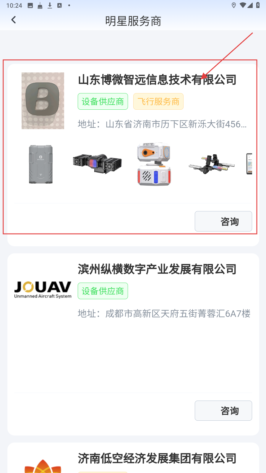 2、在【明星服务商】页面,选择想了解的合作商点击进入。