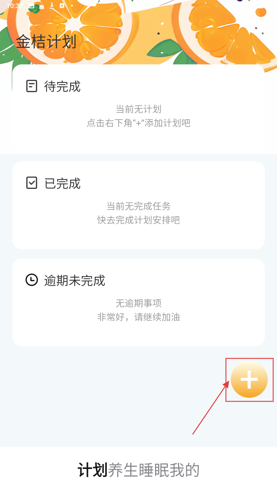 1、打开应用,在【金桔计划】页面点击【+】按钮创建新计划。
