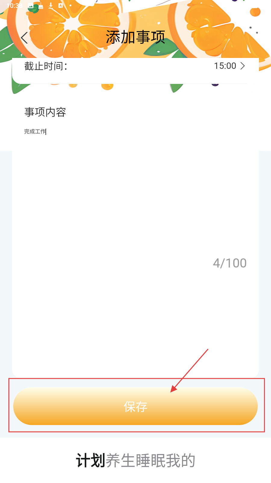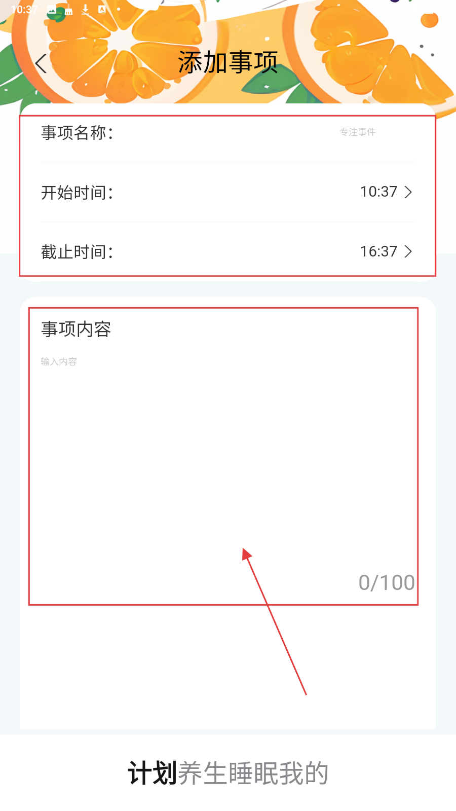 2、在【添加事项】页面,输入事项名称,选择开始时间等,完善计划。