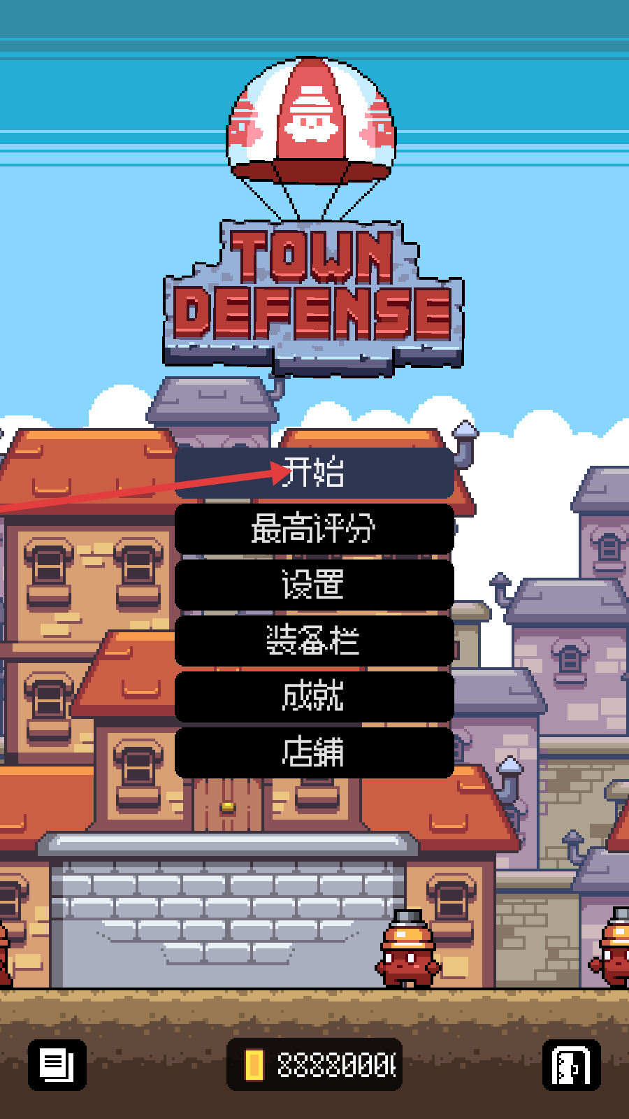 1、点击主界面【开始】按钮,消耗金币开启小镇防御战。