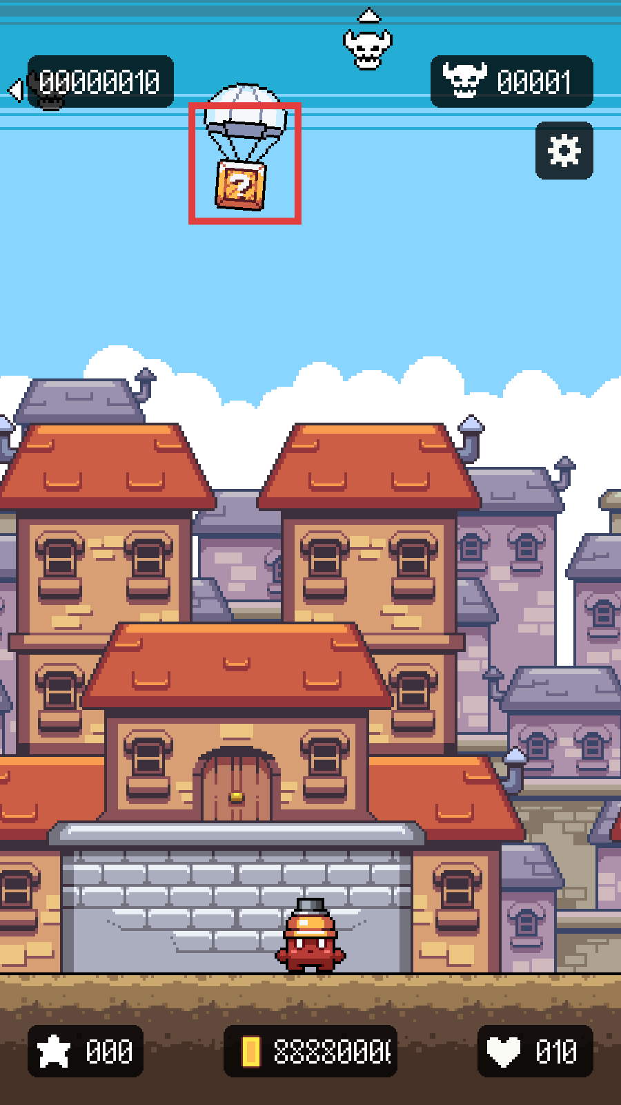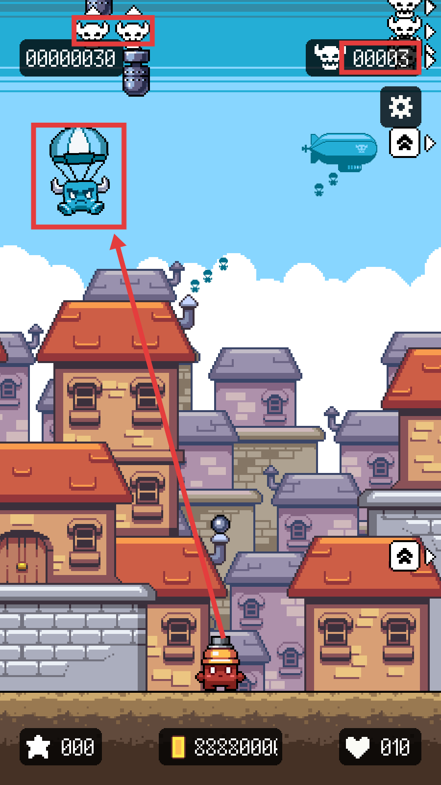 2、紧盯空中降落的道具,提升战力,确保屏幕下方血量健康。
