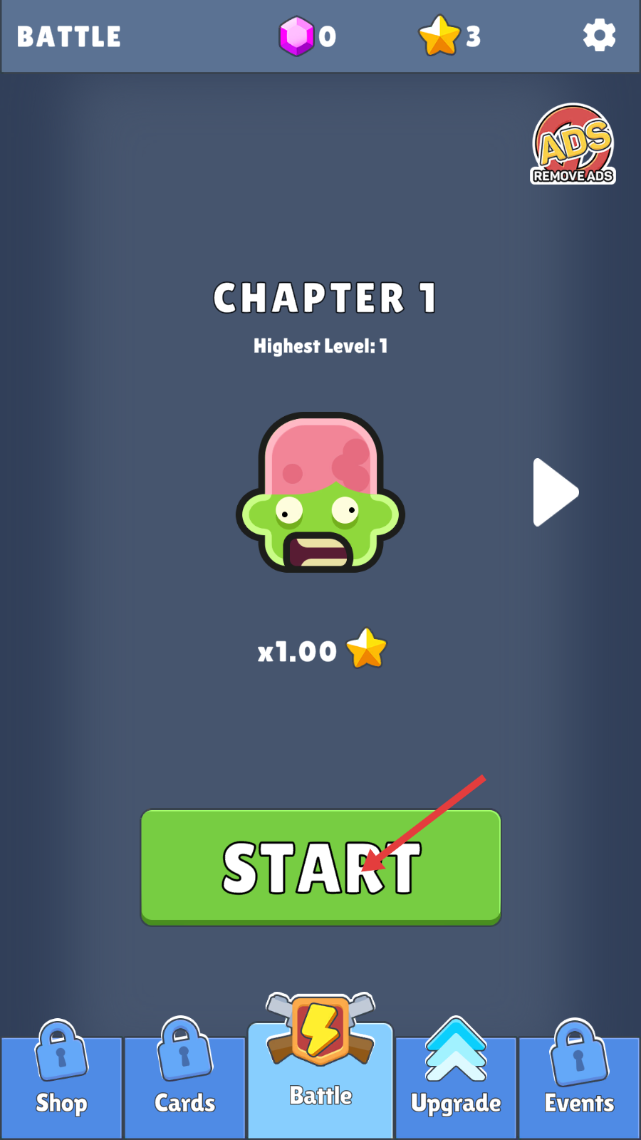 1、点击【START】进入战斗,先熟悉关卡基础流程,快速开启首战。
