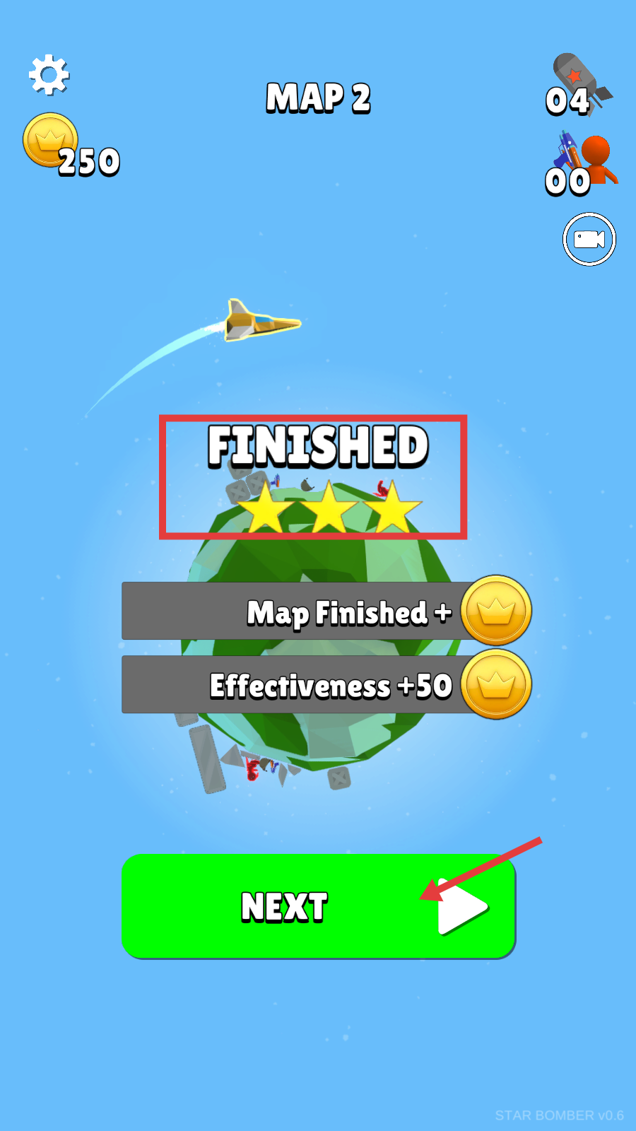 4、通关【FINISHED】后,领取奖励点【NEXT】,挑战更难地图。