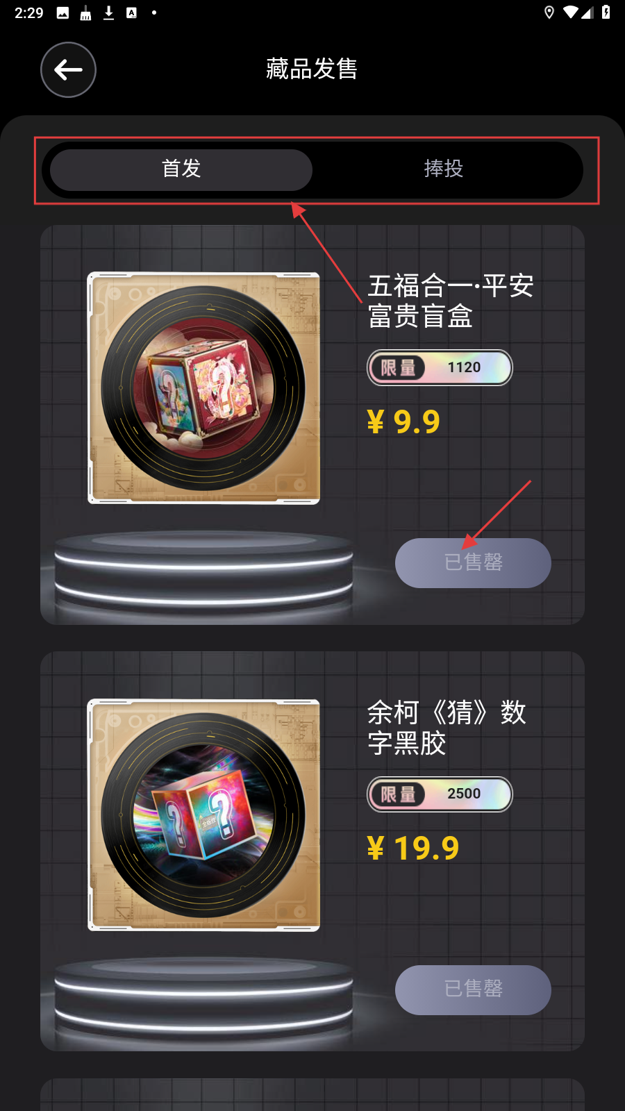 1、在首页选择【音乐发售】按钮,进入藏品发售页面,查看音乐藏品信息。