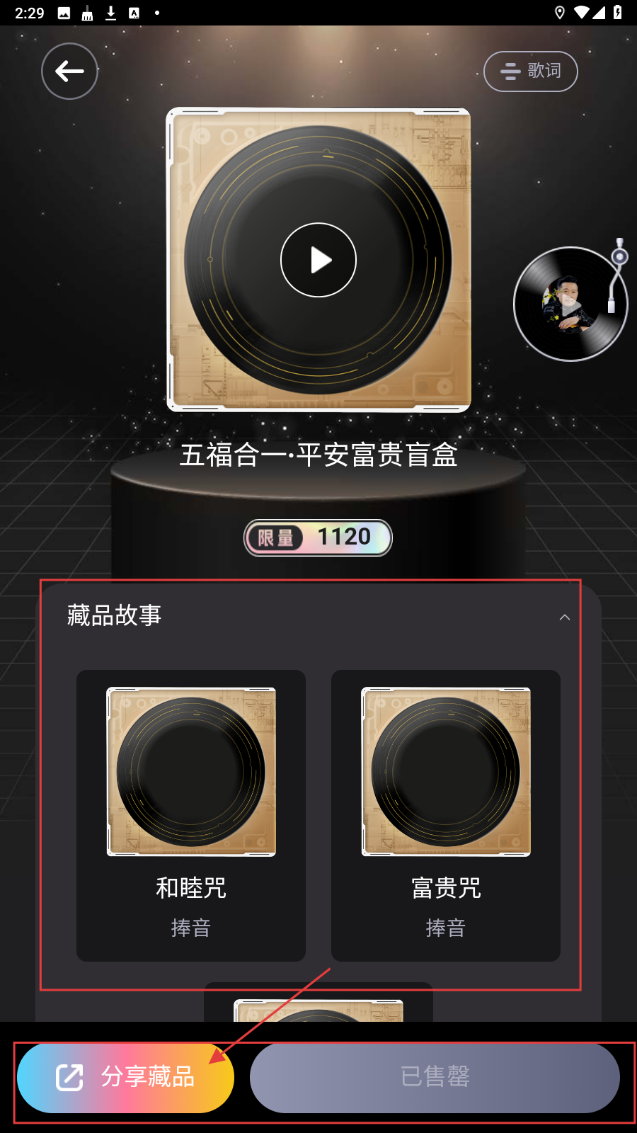 3、在藏品详情页面,点击【分享藏品】按钮,选择分享方式,将藏品分享给好友。