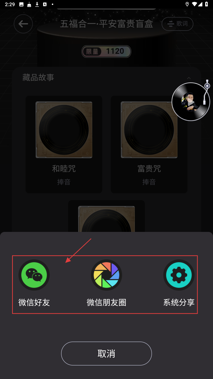4、在分享页面,选择【微信好友】【微信朋友圈】或【系统分享】,完成藏品分享操作。