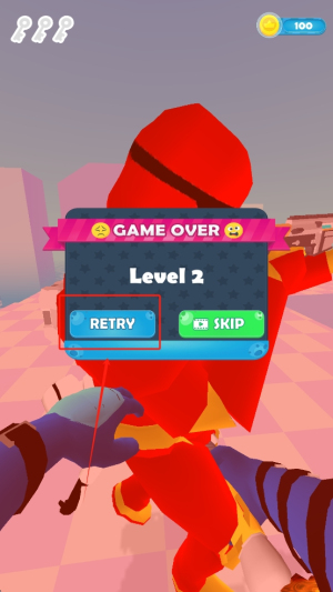 4、如果游戏结束,你可以选择“RETRY”重新开始当前关卡或者“SKIP”跳过当前关卡。