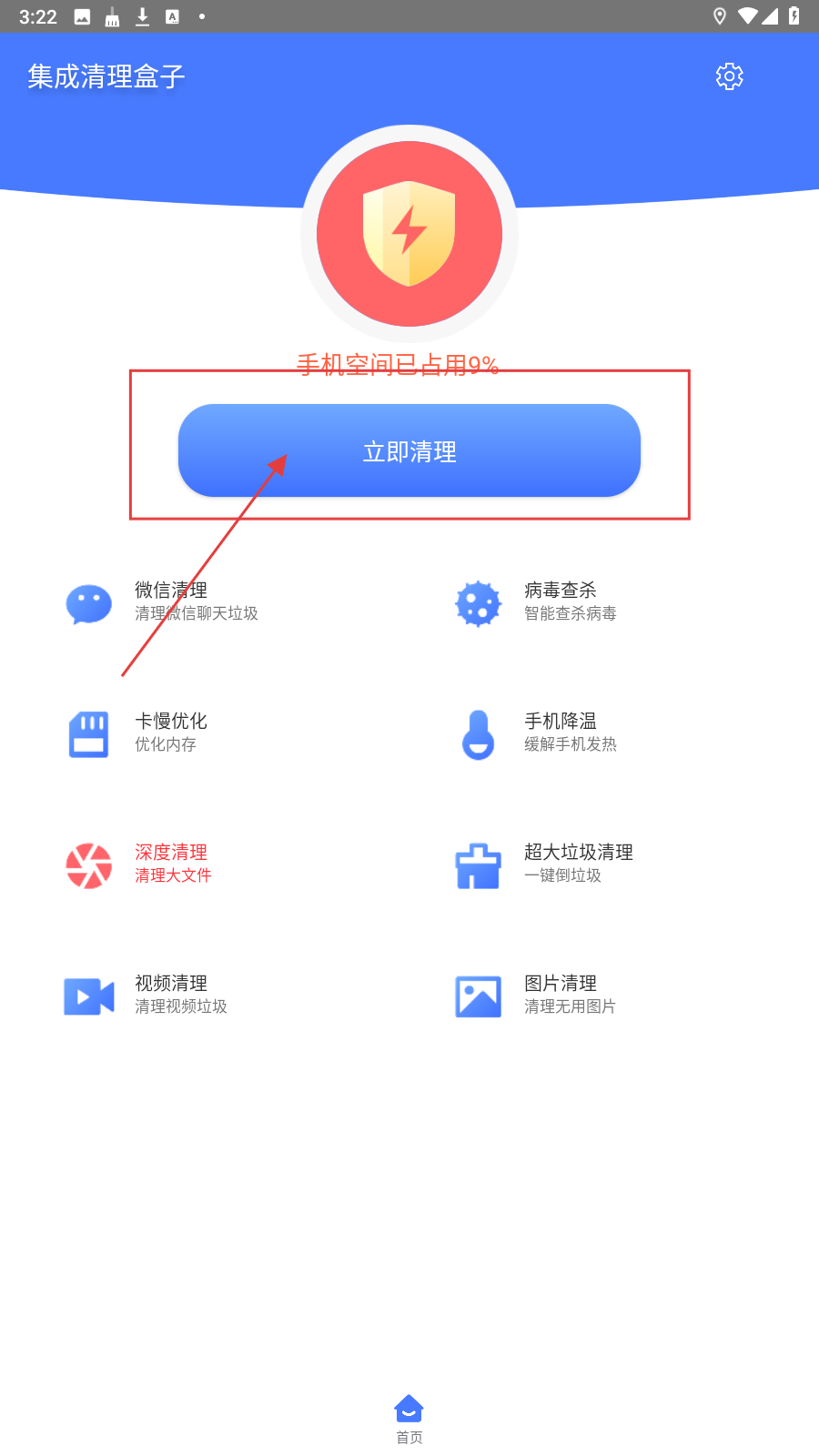 集成清理盒子是一款集垃圾清理、安全防护与性能优化于一体的多功能手机工具软件,采用智能识别与深度清理技术,全方位解决手机卡顿、内存不足、安全风险等问题。软件支持一键清理、微信专清、病毒查杀等核心功能,通过简洁直观的操作界面,让用户轻松管理手机存储与安全。无论是日常清理还是深度优化,都能为用户提供高效、便捷的手机维护体验。
