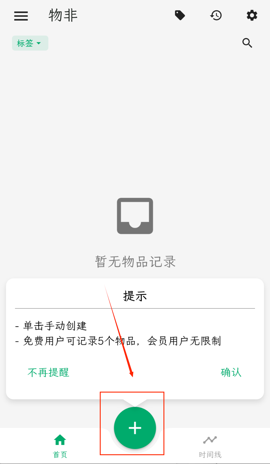 1、打开APP点击新建记录,拍摄物品当前状态,系统自动标记时间地点生成首条记录哦。