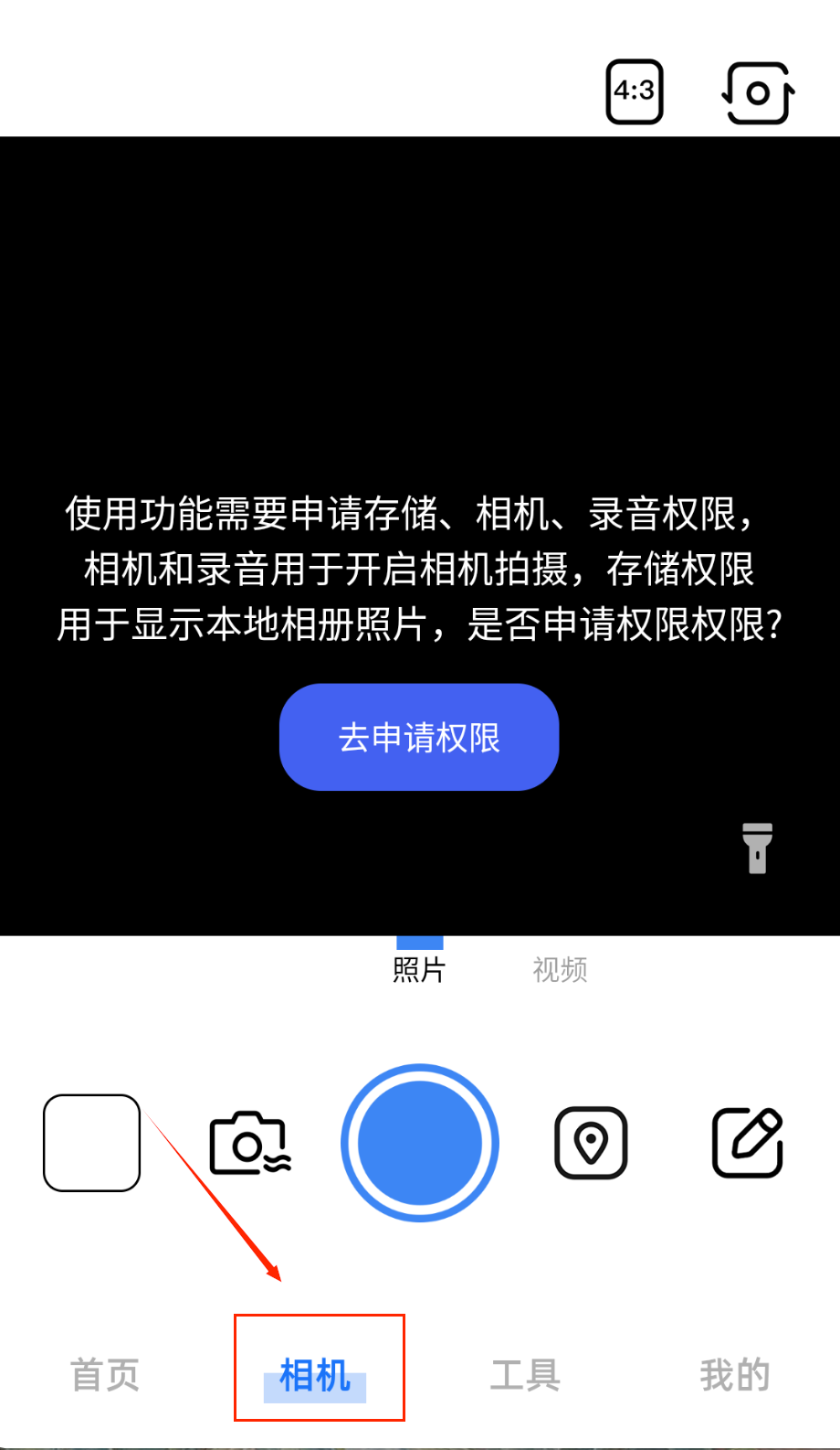 1、打开APP选择相机模式,通过实时预览框调整构图,点击拍摄按钮获取高清照片哦。