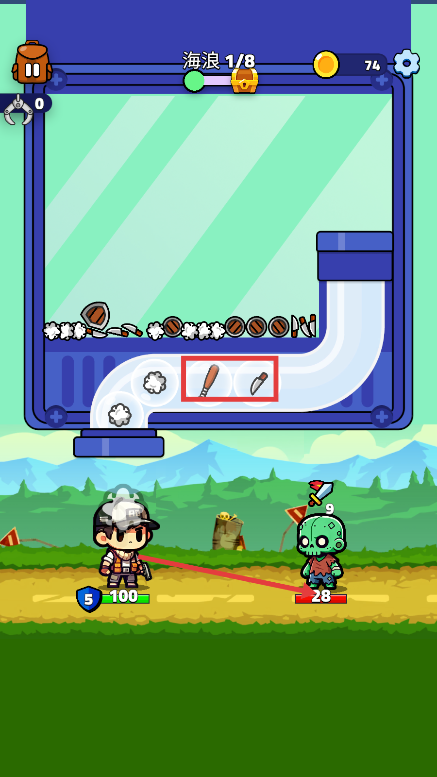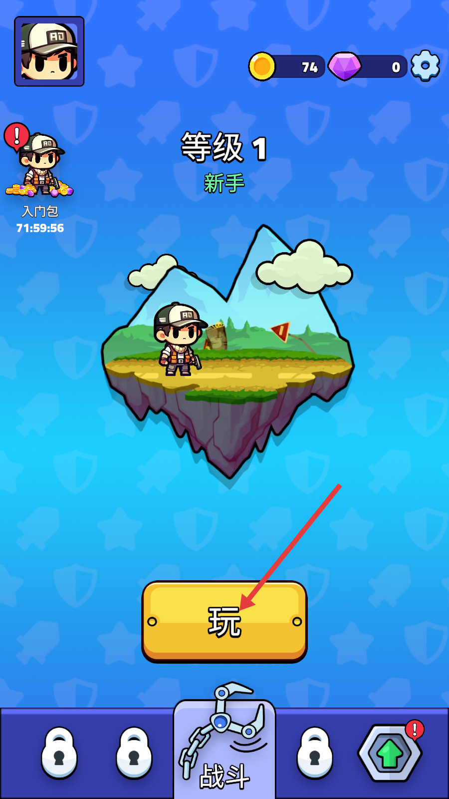 1、点击【玩】,进入1级海浪关卡,操控角色应对僵尸敌人。