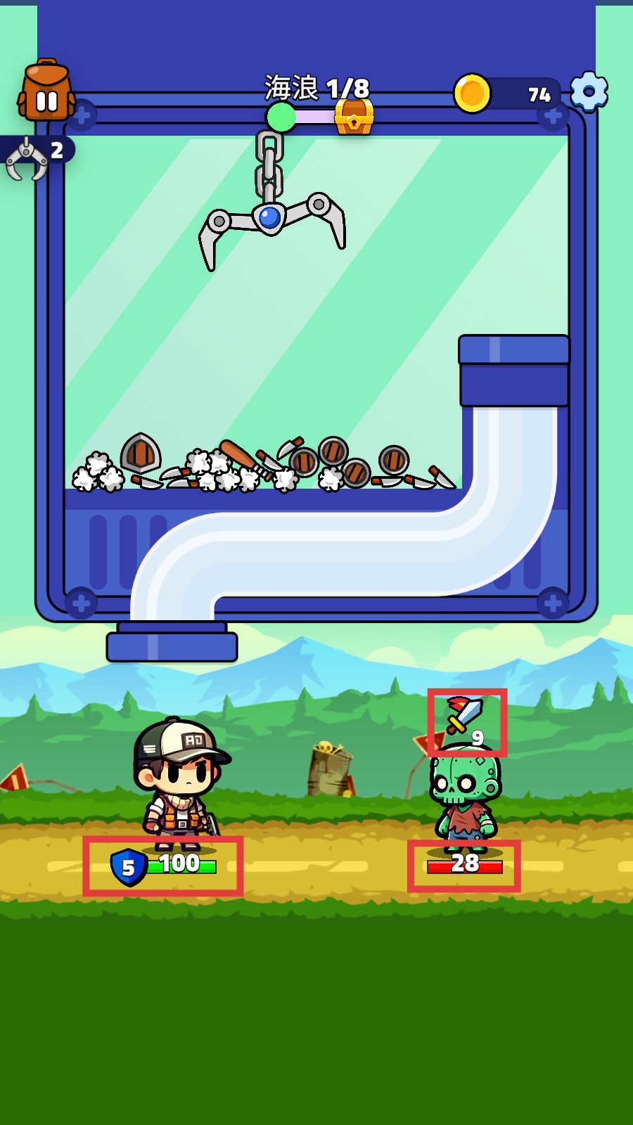 1、精准抓取操作:长按屏幕控制钩爪移动轨迹,接近目标道具瞬间松开完成抓取动作,不同物品重量影响回收速度需要预判适应。