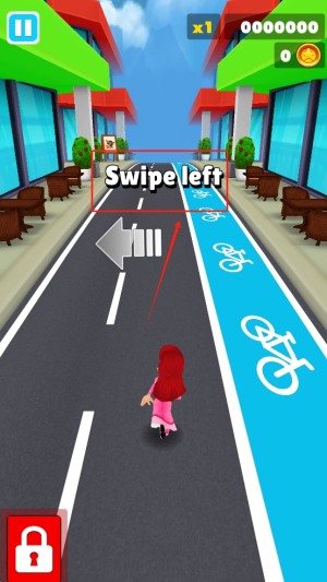 2、通过向左滑动屏幕来控制角色躲避障碍物。