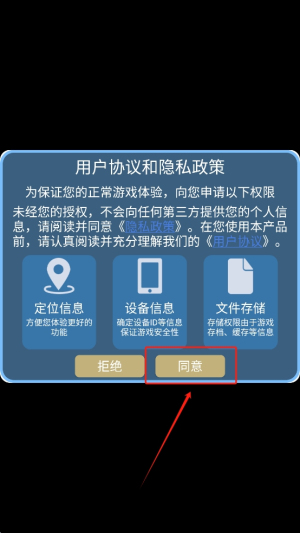 1、点击“同意”按钮,接受用户协议和隐私政策。