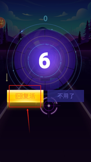 4、如果游戏失败,可以选择点击“立即复活”按钮,继续当前关卡,或者选择“不用了”按钮,重新开始游戏。