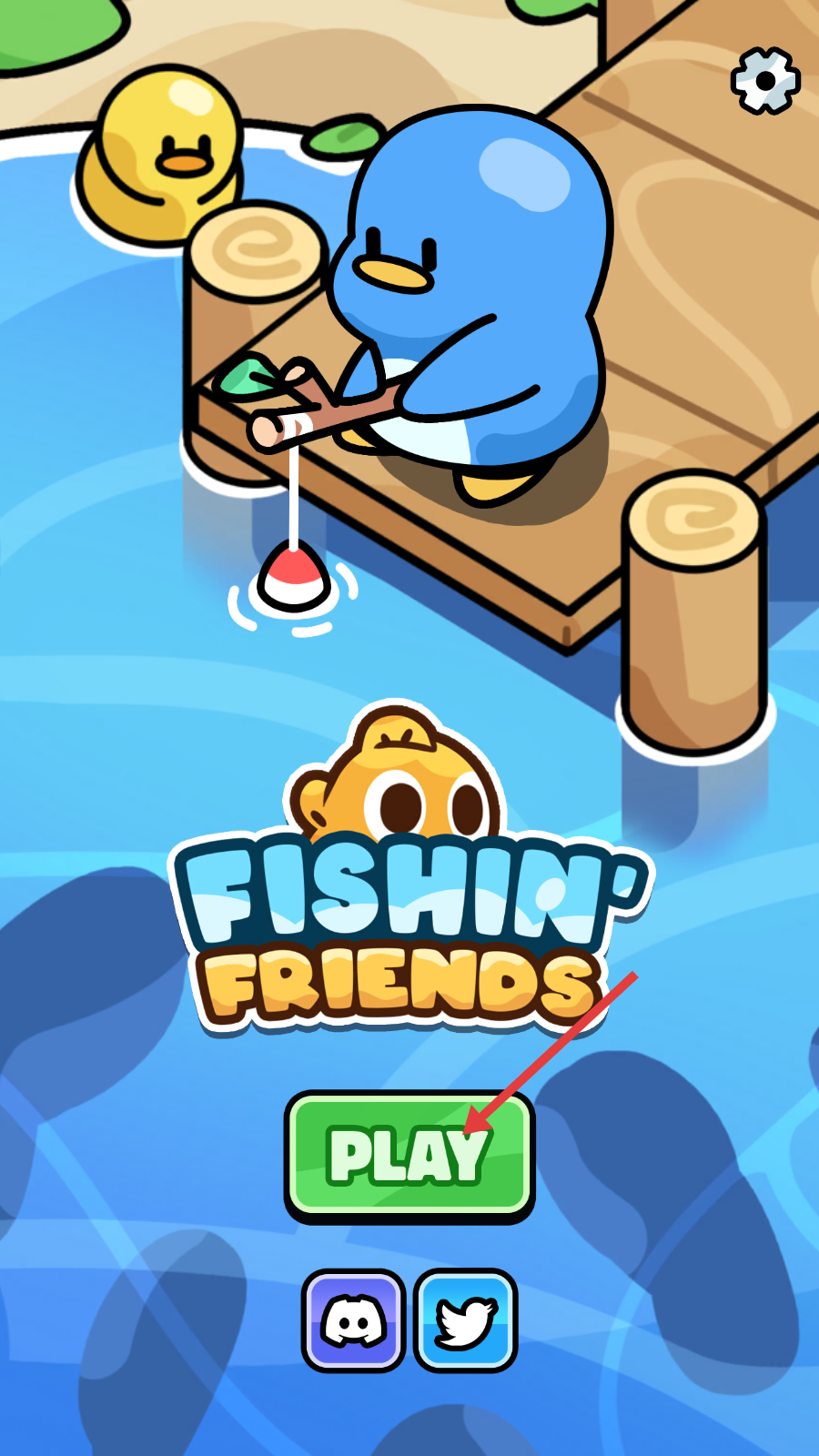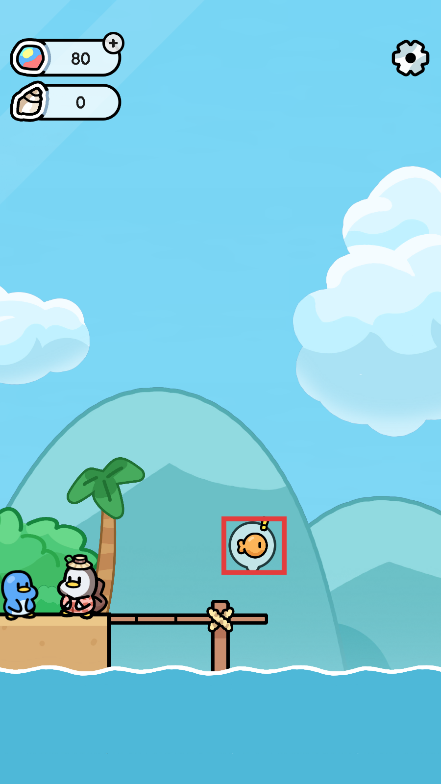 1、点击【PLAY】,操控蓝色企鹅在码头钓鱼。