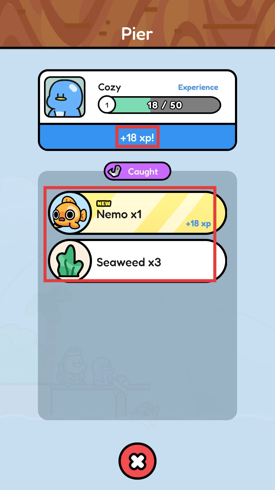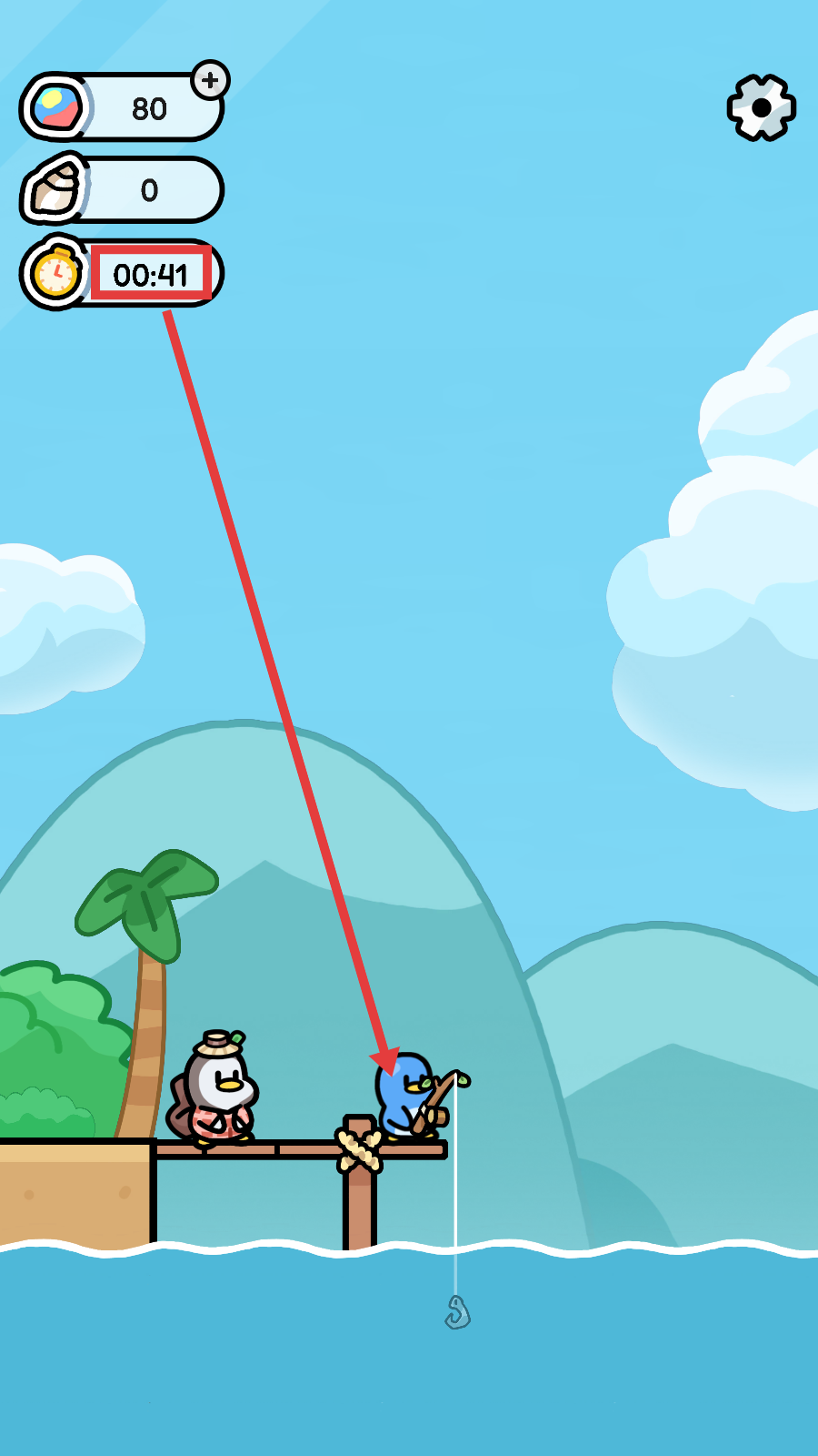 3、左上方的钓鱼时间耗尽,操纵的企鹅就能直接把鱼钓起来。