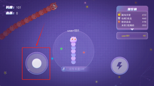 3、控制蛇蛇移动:在游戏进行时,点击并拖动左下角的虚拟摇杆,控制您的蛇蛇在地图上移动,收集食物。