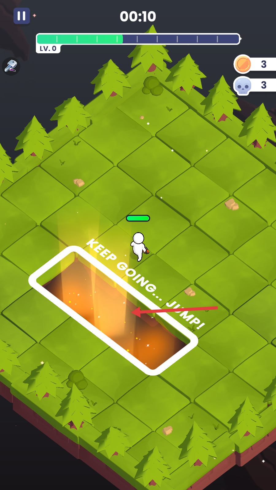 2、只要场景中地块坠落,就可以操纵小人跳下去,进入下一小关卡。