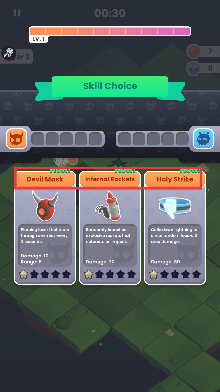 3、当上方经验值到达峰值,可以选择新的技能,加强角色战力。