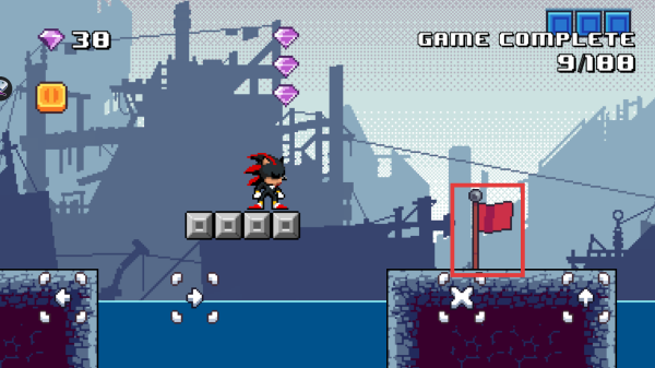 4、接近关卡终点的红色旗帜时,注意平台跳跃节奏,成功抵达完成关卡。
