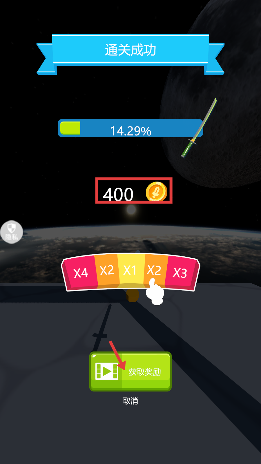 4、通关后,点击【获取奖励】看广告翻倍金币,积累资源用于后续关卡。