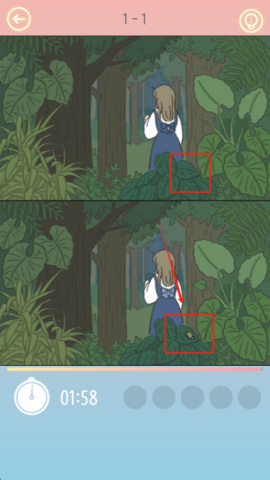 3、在游戏关卡中,根据提示找出两幅图中的不同之处。