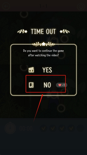 4、当时间耗尽时,选择“YES”或“NO”来决定是否观看视频继续游戏。