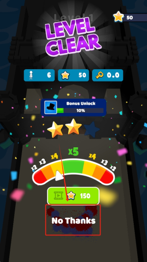 3、然后,当角色到达终点时,游戏会显示“LEVEL CLEAR”并给予奖励。