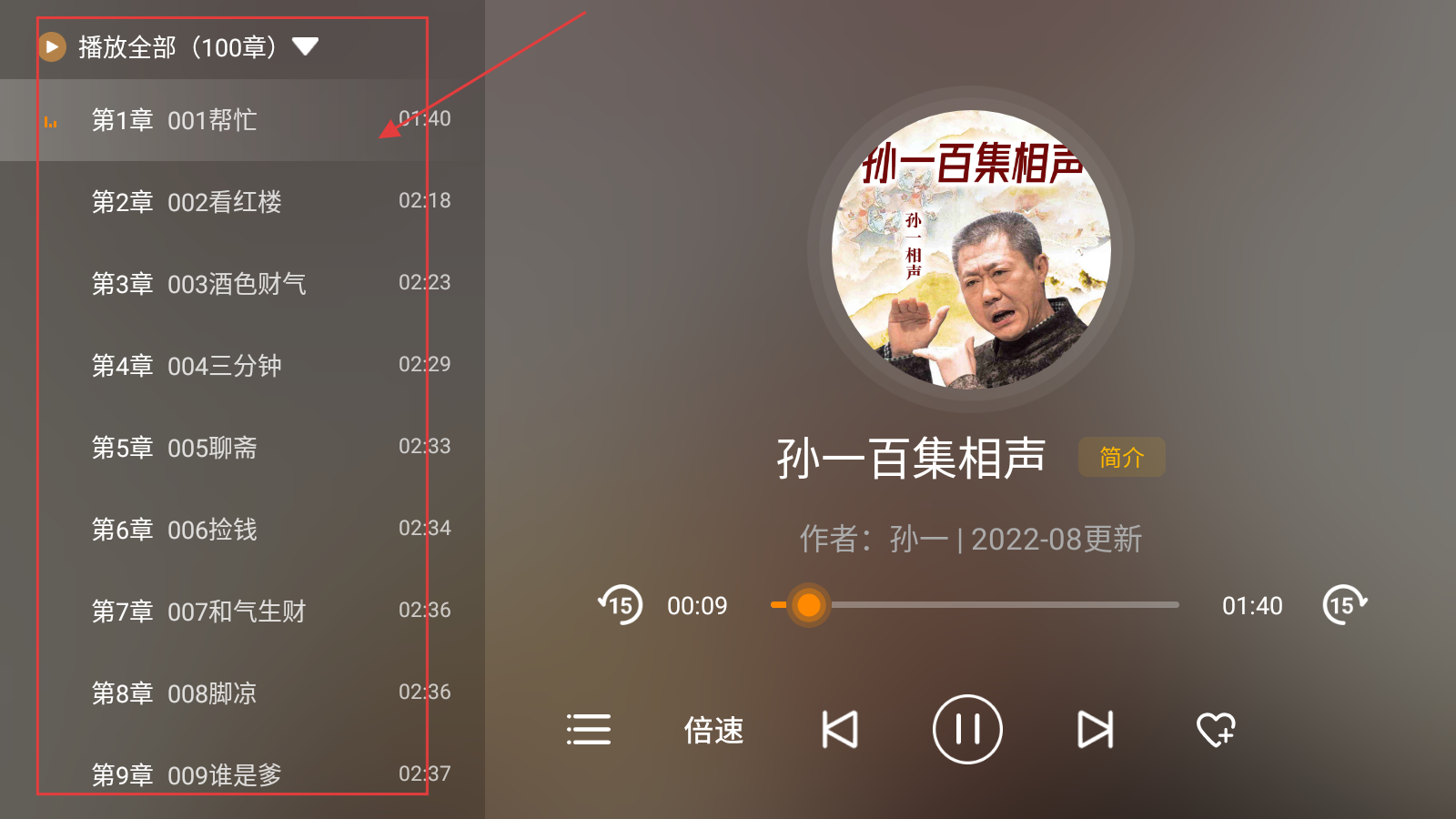 2、无广告纯净体验:采用无广告设计,听书过程更加专注;支持自动连播功能,一章节结束后自动播放下一章。