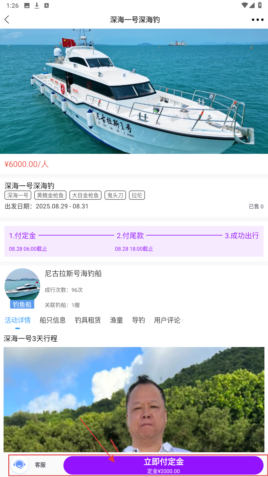 3、对于心仪的钓行活动,如【深海一号深海钓】,可查看详情并点击【立即付定金】锁定名额。