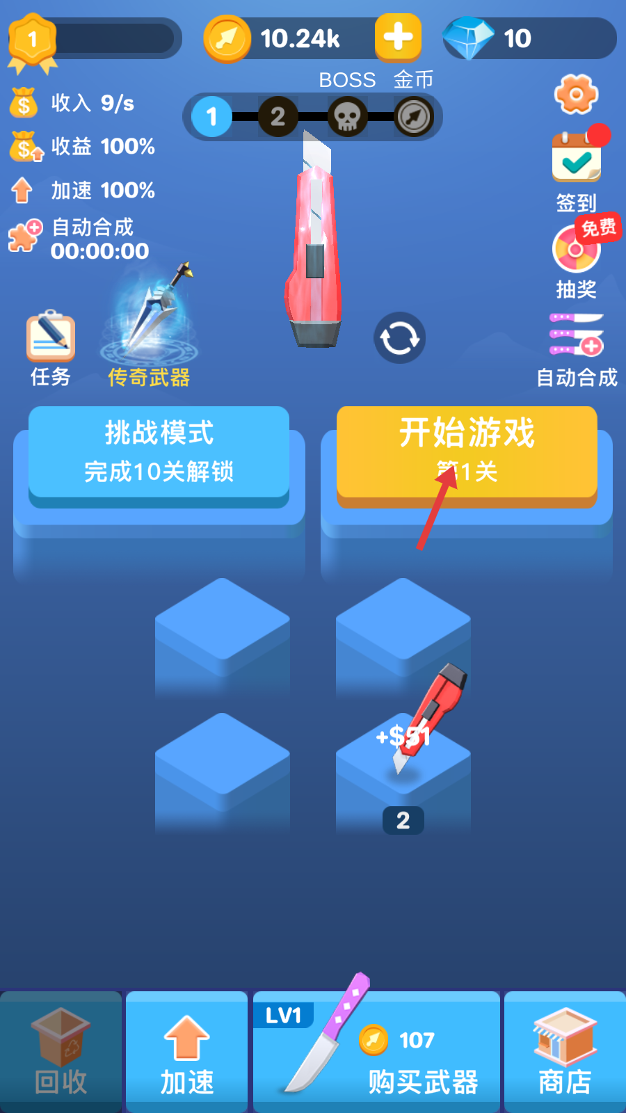 1、点击【开始游戏-第1关】,进入关卡挑战,优先熟悉基础操作流程。
