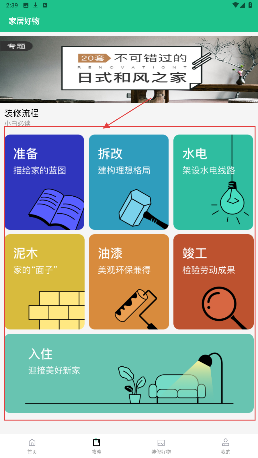 3、在【家居好物】板块,了解装修流程的各个阶段,从【准备】到【入住】,清晰掌握装修步骤。