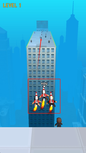 1、在跑酷中拾取火箭,控制角色移动收集沿途火箭,火箭数量达标即可启动飞行,初步掌握拾取节奏,开启飞行跑酷之旅,试玩轻松。