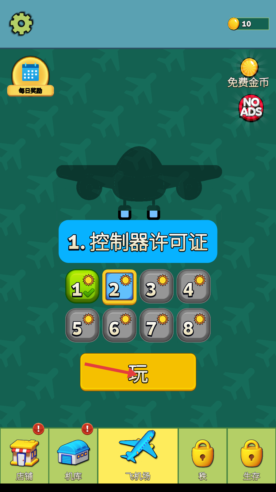 1、点击【玩】,进入“控制器许可证”第2关,开启机场指挥挑战。