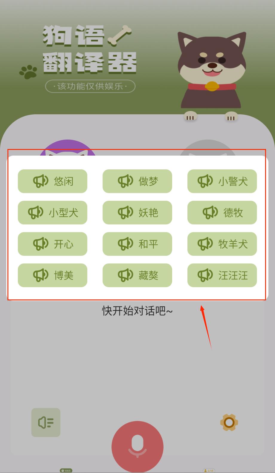 1、启动应用后点击录音按钮录制猫叫,系统自动分析声波特征并翻译成文字描述需求。