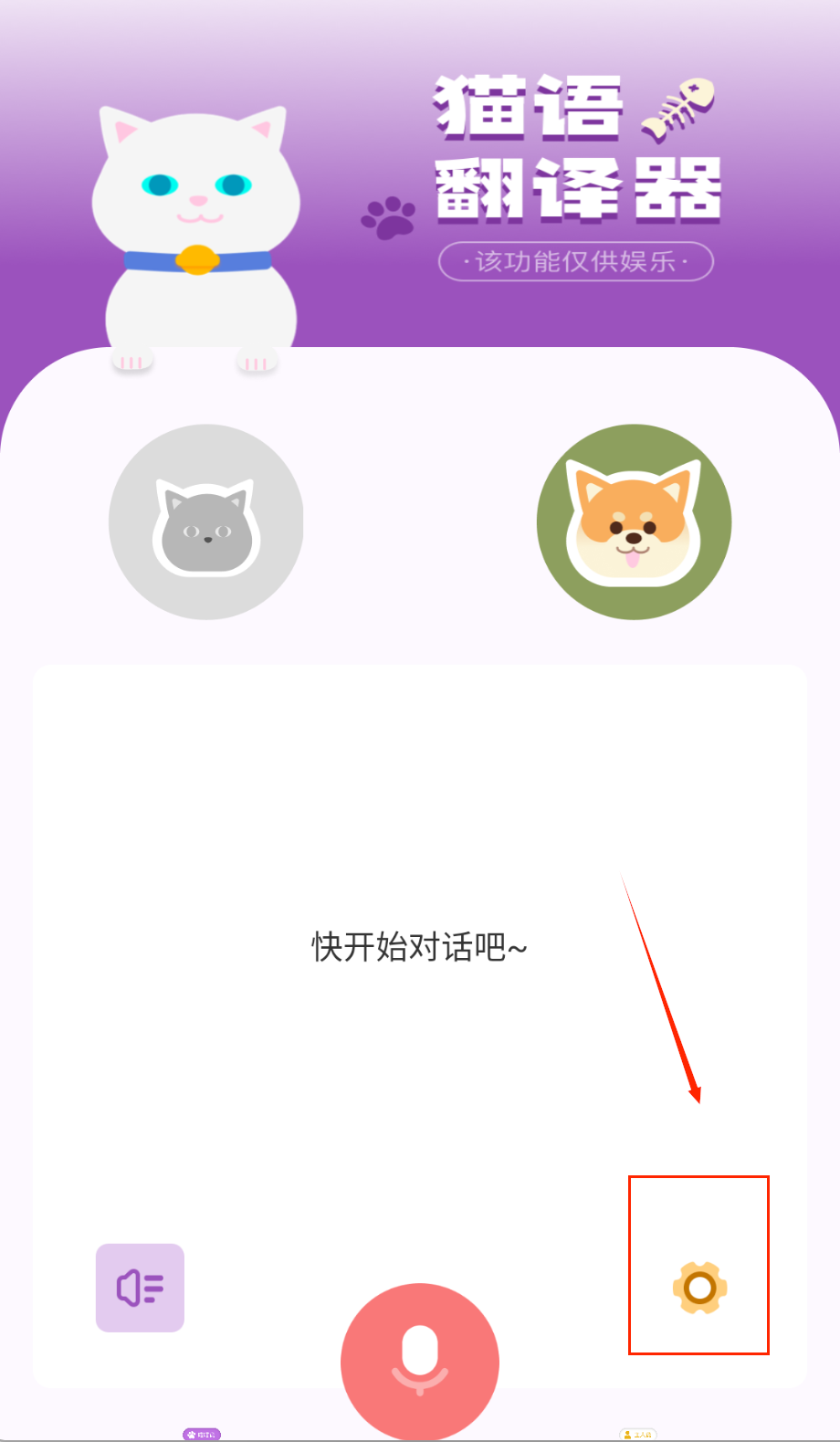 2、在人猫对话模式下说出指令,APP实时转换为高频猫叫声波通过扬声器播放传递信息。