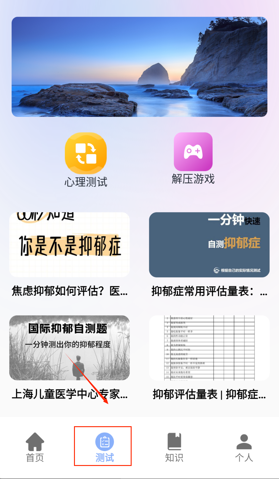 1、打开APP选择心理测试模块,从50+专业量表中挑选适合的问卷,开始答题评估哦。